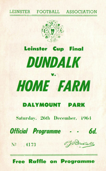 After 4 years at the Market’s Field, and a short spell at Longford Town, Leo was on the move again—with 2 goals on his Dundalk debut in the opening game of the 1962-63 year. By the 2nd of September a hat-trick against Drumcondra in the Casey Cup gave him 6 goals in 4 starts but before September was out he was at right half covering for the injured Tommy Rowe.